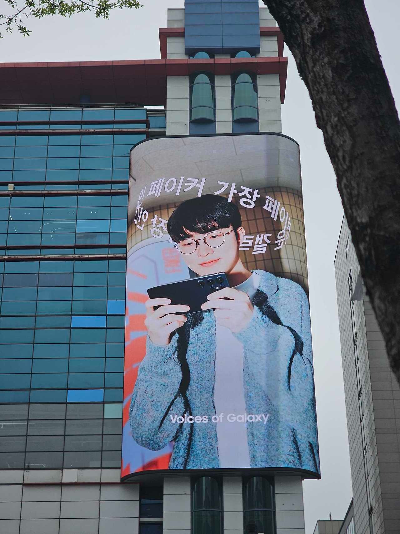 빌딩 정면에 설치되어 보행자 및 차량 모두에게 탁 트인 시야 제공하고 있으며, 거리와 높이가 시야선상에서 이상적 (약 10~30m 거리, 눈높이 ±15° 각도)입니다. 그리고 중앙차로 버스 정류장 이용객과 횡단보도를 이용하는 보행자가 일정시간 머무르는 위치에 자연스러운 시선 유도가 가능합니다.