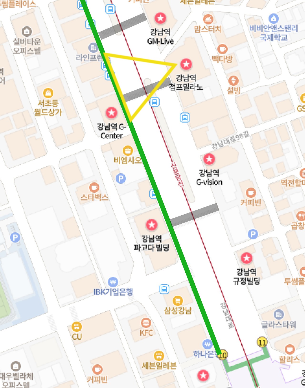 또 다른 강남역 지상 매체를 중심으로 연결성을 하나씩 짚어보겠습니다.