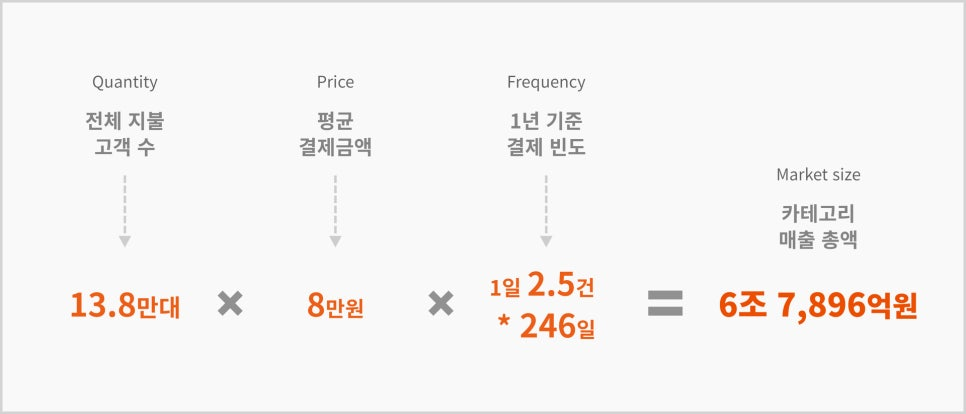 → 연간 시장규모: 12.8만개 × 8만원 × 48회 = 4,915.2억원